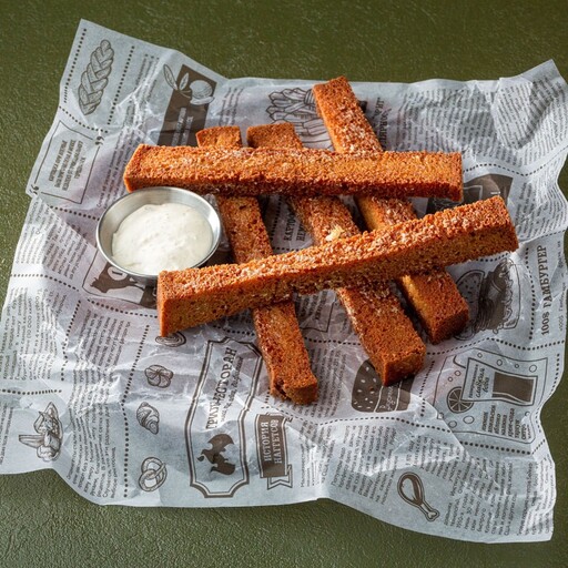хлеб бородинский жареный с чесноком и соусом сливочно- чесночным