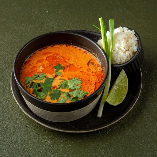 мидии, креветки, кальмары, осьминожки, паста Том Ям, рис, кокосовое молоко, лайм, лемонграсс, листья лайма, помидоры черри