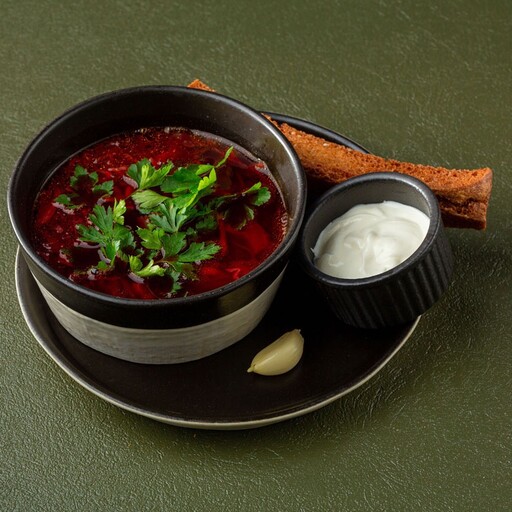 телятина, свекла, морковь, капуста, лук, сметана, гренки, чеснок