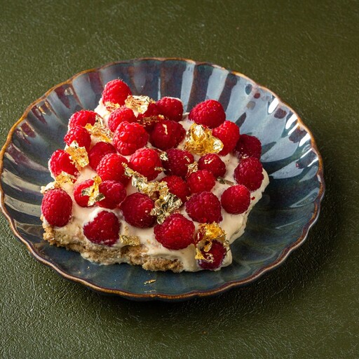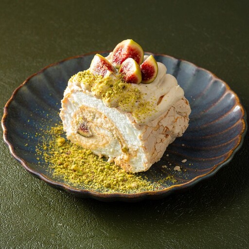Меренговый рулет, малина, клубника, творожнный крем, рубленые фисташки
