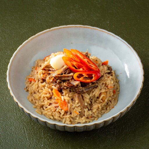 рис индиго,морковь,лук репчатый ,чеснок,перепелиное яйцо,чили перец,баранина
