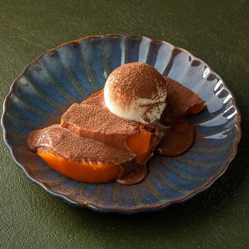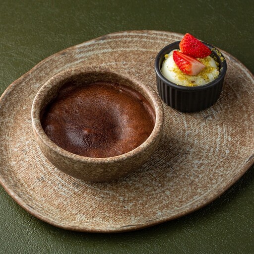 французский кекс в твердой хрустящей оболочке и жидкой шоколадной сердцевиной, мороженое