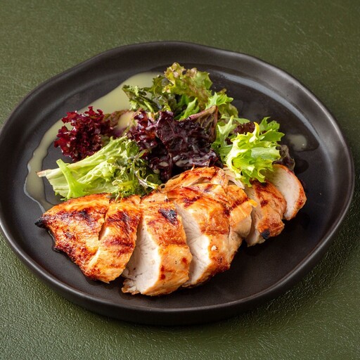 Куриное филе, соус альфредо, микс салата, соус греческий, фирменное греческое масло