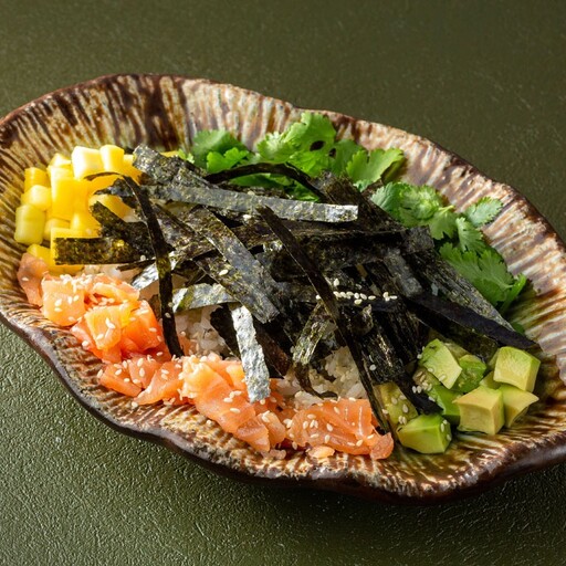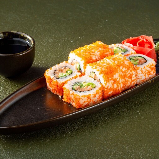 семга слабосоленая, авокадо, рис, кинза, кунжут, соевый соус, манго, нори