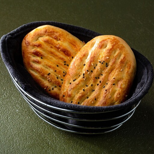 Булочка с золотистой верхушкой, посыпанная семенами тмина и кунжута