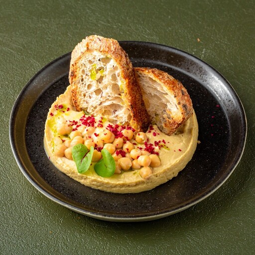 Нут, кунжутное паста, ароматное масло, цельнозерновой хлеб