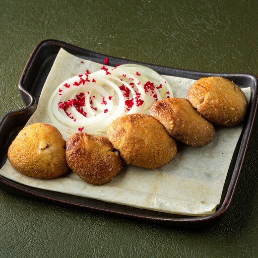 аварский хинкал жареный, телячья вырезка, соус томатный, дагестанский сыр, кинза, фирменное греческое масло