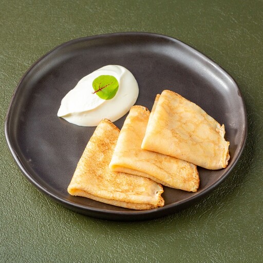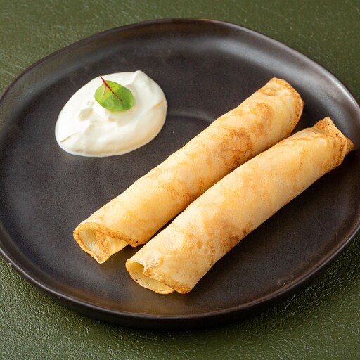 Нежные блины с говяжьим фаршем и пряными приправами. Подается со сметаной